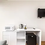 Dieses Apartment bietet seinen Gästen den Komfort von Selbstversorgungseinrichtungen, einschließlich von einem Wasserkocher und einem Kühlschrank.